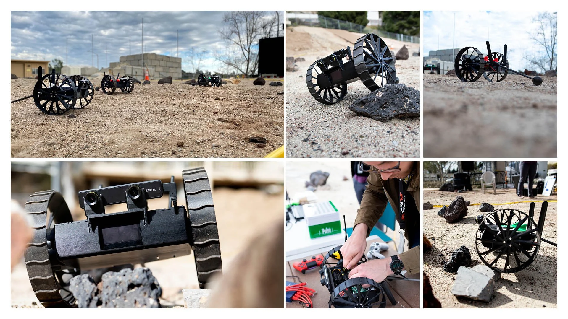 Each robot contains an onboard computer with a wireless radio for communication and a stereo camera – which has multiple lenses and image sensors – for sensing the environment and capturing 3D imagery.